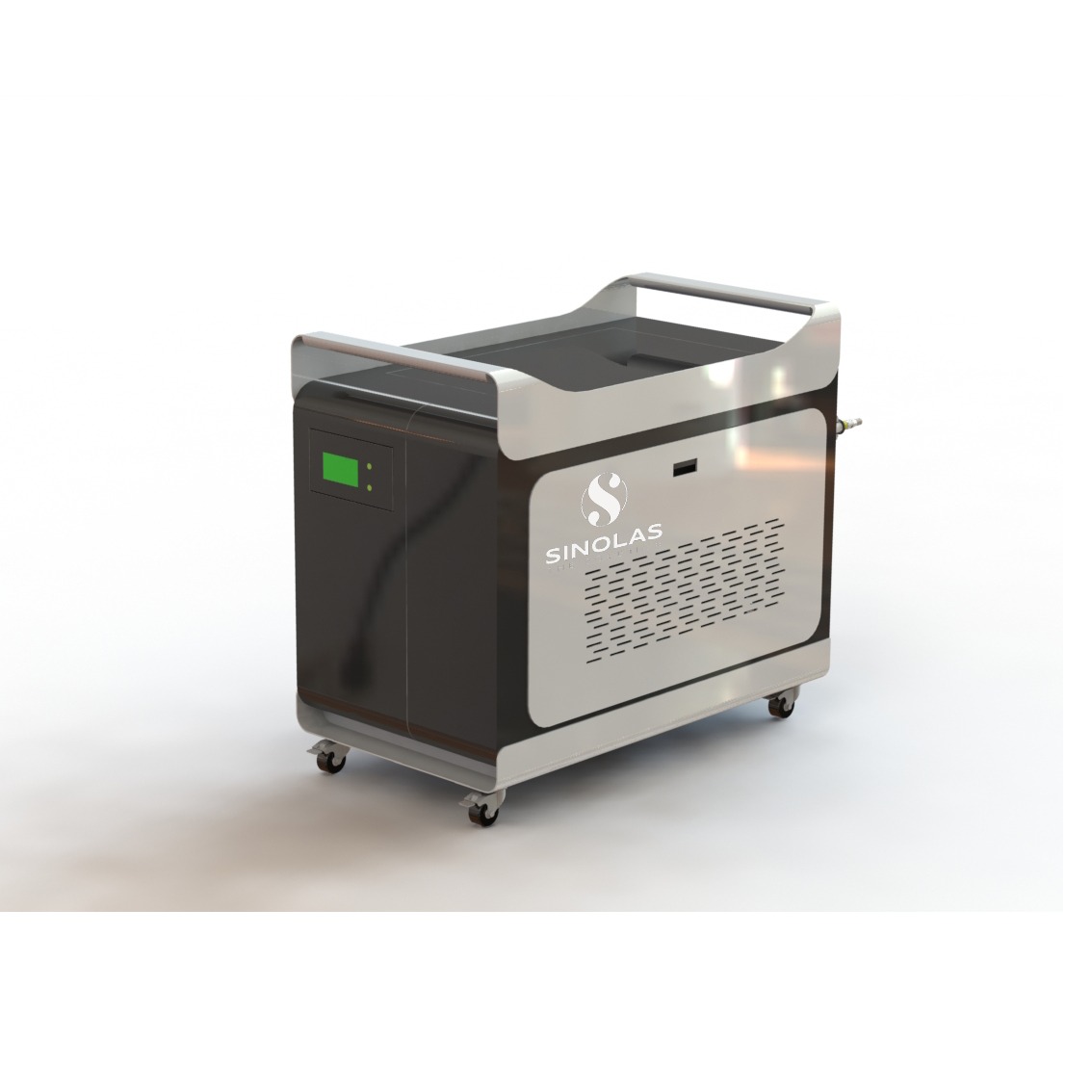 La machine SINOLAS version pulsé dispose d’un laser à fibre de 50W à 500W. Pulsé pour briser les liens moléculaires entre la corrosion et le substrat, ce qui a pour effet de vaporiser les contaminants par sublimation, laissant la surface intacte. Tout matériau retiré restant peut être aspiré et collecté dans un filtre sous forme de poussière de particules.
